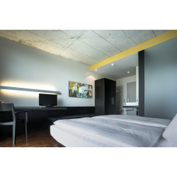 Design Hotel - mit Komfort Star-Architekt aus Mailand, Matteo Thun, war bei den ersten Skizzen federführend. Die weitere Planung und Realisation übernahm die air architekten ag, Andreas Imhof und Bernard Roth aus Kreuzlingen. Wir lieben modernes Design. Unser Hotel besteht aus viel Glas, wertigen Materialien und Beton. Helle Räume mit Echtholz-Parkett und moderner Ausstattung bieten Komfort und Gemütlichkeit. Geniessen Sie ein stilvolles Ambiente an bester Lage.