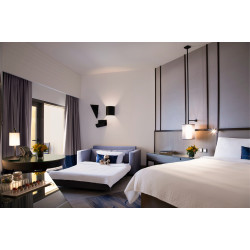Idealerweise gelegen an Dubais berühmter Freizeit- und Einkaufsmeile „The Walk“ in der Jumeirah Beach Residence (JBR) erleben Sie im Amwaj Rotana Hotel höchsten Komfort. Hotelgäste profitieren von den zahlreichen Attraktionen in der unmittelbaren Umgebung, darunter die Beach Mall mit einem Wasserpark für Kinder, der Jumeirah Beach sowie vielfältige Einkaufs- und Unterhaltungsmöglichkeiten. Das Amwaj Rotana verfügt über 301 geschmackvoll eingerichtete Zimmer und Suiten, darunter das renommierte Club Rotana mit maßgeschneiderten, exklusiven Services für anspruchsvolle Gäste. Das Hotel bietet die größten Zimmer entlang der JBR, jeweils mit eigenem Balkon und Blick auf den Arabischen Golf und die Palm Jumeirah. Kostenfreies WLAN steht in allen Zimmern sowie in den öffentlichen Bereichen zur Verfügung. Mit vier hervorragenden Gastronomiekonzepten, die italienische, amerikanisch-japanische, britisch-amerikanische sowie internationale Küche anbieten, ergänzt durch Live-Unterhaltung, Happy Hours, Themenabende und vieles mehr, dürfen sich Gäste auf ein abwechslungsreiches und genussvolles kulinarisches Erlebnis freuen. Darüber hinaus verfügt das Hotel über ein Konferenzzentrum, das speziell für Unternehmen konzipiert wurde, die einen modernen und erstklassigen Tagungs- und Veranstaltungsort suchen. Zu den Freizeitangeboten auf dem Hotelgelände gehört der Bodylines Fitness & Wellness Club mit zwei temperaturgeregelten Swimmingpools für Erwachsene und Kinder, einem voll ausgestatteten Fitnessstudio, Jacuzzi, Dampfbädern, Sauna sowie einem Spa. Auch für die kleinen Gäste ist bestens gesorgt – im Flipper’s Kids’ Club Activity Centre können Kinder nach Herzenslust spielen und Spaß haben.