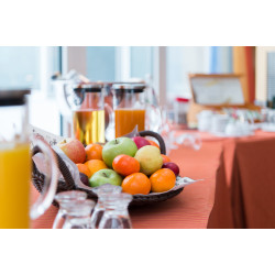 Das HOTEL FULDA MITTE befindet sich im Zentrum von Fulda, in der Mitte Deutschlands. Diese Lage bietet optimale Erreichbarkeit durch den nur 600m entfernten Haupt-/ICE-Bahnhof Fulda und eine sehr gute Autobahnanbindung. Vom hauseigenen Parkhaus bringt Sie ein Aufzug direkt hoch in die Lobby. Das Innenstadthotel ist idealer Ausgangspunkt für fußläufige Erkundungen der schönen osthessischen Barockstadt. Im altehrwürdigen und geschichtsträchtigen Stadtzentrum stehen wundervolle Fassadenbauten aus dem 18. Jahrhundert direkt neben idyllischen, grünen Parks und Gärten mit kunstvollen Statuen. Neben Sightseeing Highlights sind auch Einkaufsmeilen und gemütliche Gassen nur einen Katzensprung entfernt. Genießen Sie alle Annehmlichkeiten eines 4*-Hotels und exzellenten Service in direkter Nähe zum bekannten Fuldaer Dom. 134 helle und geschmackvoll eingerichtete Zimmer, teilweise klimatisiert, erwarten Sie. Wählen Sie aus dem Kissen-Menü Ihr Wunschkissen für eine besonders erholsame Nacht. Für individuellen Komfort steht Ihnen ein Zimmerservice zur Verfügung. Das Hotel Fulda Mitte bietet im gesamten Haus kostenfreien Internetzugang (W-LAN) sowie in jedem Zimmer eine gratis Auswahl verschiedener Sorten Kaffee und Tee an. Starten Sie mit einem ausgedehnten Frühstück in den Tag. Ob frische Obst-Variationen oder leckere Pfannkuchen mit Rhöner Rapshonig - In der stilvollen Atmosphäre des Restaurants "Ambiente" genießen Feinschmecker die Gaumenfreuden der raffinierten und leichten Küche des Hotels. Eine wechselnde Saison-Karte ergänzt das Angebot mit frischen Gerichten, passend zur Jahreszeit. Unser Haus ist auch ein gefragtes Tagungshotel und auf die Wünsche der Veranstaltungsplaner eingestellt. Wir bieten Ihnen 13 unterschiedlich große Tagungs- und Konferenzräume in schlichter und farbenfroher Eleganz, moderne technische Ausstattung sowie 2 separate Pausenbereiche. Der Internetzugang ist natürlich kostenfrei. Ein besonderer Tipp: Das Ideen-Karussell, eine langsam rotierende Plattform mit Stehtischen, hält Geist und Kreativität Ihrer Teilnehmer in Schwung.