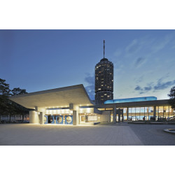 Du suchst eine Tagungslocation in München und dein Budget wird gekürzt? Dann komm einfach nach Augsburg: Kongress am Park - Seit 50 Jahren Ort der Begegnung, des Austauschs und der Inspiration Im Dreieck München-Stuttgart-Nürnberg – schnelle ICE-Anreise aus der DACH-Region Stadt der kurzen Wege: schnell ins Hotel oder in die Altstadt Das 1972 erbaute und 2012 sanierte Ensemble gilt in Fachkreisen als Denkmal für den Brutalismus, aber durch seine Energieeffizienz auch als Monument for Future im Klimawandel, wo gebaute Architektur als Ressource für Nachhaltigkeit dient. Der „Béton brut“ wird von einem preisgekrönten Lichtkonzept bewusst in Szene gesetzt, mit farbigen LED-Akzente und vintage Beleuchtungselementen. Die besondere Wohlfühlkulisse beruht auf Klassiker der 70er Jahre wie die Sitzschlange von Verner Panton und auf jährlich wechselnde Kunstwerke. 3.000 qm für Kongresse im Grünen: der Kongresssaal (1.400 P.), der Saal Lech (330 P.), zwei helle Foyers auf 1.300 qm mit Parkzugang und sieben Tagungsräume. Der Biergarten und das benachbarte Dorint Hotel (4-Sterne Superior) runden das Angebot ab.