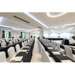 Eventlocations für jeden Anlass Meetingräume verschiedener Größen dank modular gestaltbarer Wände, modernste Technik, zwei Zeltflächen a 3.900 m² mit 12 Meter hohen Decken sowie die multifunktionale 400 m² große Eventlocation The Ocean´s mit seinem doppelten Projektions- und Audiosystem und einer 200 m² großen überdachten Terrasse bieten Raum für jede Art von Event oder Konferenz. Zu den Highlights gehören: • Tagungsräume in verschiedenen Größen • Multimediaräume, Ausstellungsflächen • Innen-, Außen- und Strandeinrichtungen für Tagungen, Hochzeiten und andere Veranstaltungen, ergänzt durch professionelle Planungsleistungen und individuelles Catering • Ausstellungsbereiche • WLAN im gesamten Hotel Gran Centelles: Sorolla, Picasso, Oliva und Palacio Direkt im Hauptgebäude, mit Zugang zu Garten- und Pool Bereich des Hotels, können die insgesamt 480 qm in 4 unabhängige Räume unterteilt werden.. Dalí und Velázquez 150 qm im Nebengebäude des Hotels, mit direktem Zugang vom Parkplatz, können in 2 unabhängige Räume getrennt werden.