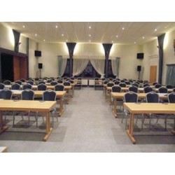 Drei Tagungsräume: 131 m2 bis 70 Personen 80 m2 bis 40 Personen 45 m2 bis 15 Personen Tagungstechnik: Leinwand, Beamer, Flipcharts, Pinnwände, Moderationskoffer, Tageslichtprojektor, Video, TV