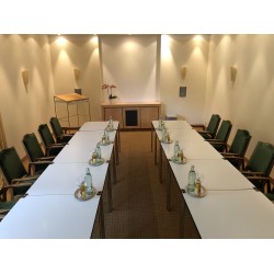 2 Tagungsräume Tagung bis 35 Personen Größter Tagungsraum: 80 qm Kapazitäten insgesamt: 200 qm 87 Zimmer kostenfreis Parken 1 Restaurant 1 Hotelbar 1 Cafe