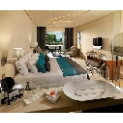 Das von der Unternehmer-Familie Torres geführte und von einem Team renommierter Architekten und Designer im Jahr 2008 errichtete Hotel Aguas de Ibiza Spa & Resort verleiht der Hotellerie auf der Insel, die von der UNESCO in der Kategorie Kulturschätze und biologische Vielfalt zum Weltkulturerbe erklärt wurde, eine neue Richtung: ruhiger, nobler und mehr auf Wohlbefinden und "umweltfreundlichen Luxus" fokussiert. Im Aguas de Ibiza werden geschätzte 35% an Energie eingespart, ohne dabei bei Serviceeinrichtungen oder Qualität Abstriche zu machen. Es handelt sich dabei um ein exklusives Hotel, das darauf abzielt, in Bereichen der Architektur, des Designs und des Wellnessbereichs zu den besten Mittelmeerhotels zu zählen. Das Aguas de Ibiza liegt am Hafen von Santa Eulalia, gegenüber des neuen Kongresszentrums und nur circa 14 Kilometer vom historischen Stadtkern Ibizas entfernt. Der Golfclub ist in etwa 10 Minuten, der Flughafen in circa 30 Minuten zu erreichen. Insgesamt 114 Zimmer und Suiten auf 4 Etagen, geschmackvoll und modern ausgestattet, bieten höchsten Komfort und ein luxuriöses Ambiente. Grosse Fenster sorgen für viel Licht und Helligkeit. In der ersten bis dritten Etage befinden sich die Standardzimmer, Junior-Suiten und Corner-Suiten, alle mit Balkon. Die Club-Etage „Cloud 9“, mit eigenem Check-In-Desk und Serviceangebot, befindet sich in der 4. Etage, neben dem Presidential Ibiza Loft. Alle Zimmer haben Parkettböden, Badezimmer mit Bademänteln und Fön, Minibar, Internetzugang, Sat-TV von Bang & Olufsen und Klimaanlage und Domotik (Energiesparsystem, das sich automatisch anpasst).