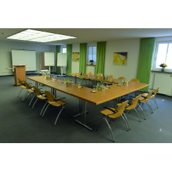Erfolgreich tagen im Arcus-Hotel! Der voll ausgestattete, komfortable Konferenzraum bietet den idealen Rahmen für exklusive Konferenzen und Seminare. Unterschiedliche Bestuhlungsvarianten ermöglichen für jeden Anspruch die passende Gruppierung. Unser Konferenzraum verfügt über attraktive, indirekte Beleuchtung, kann aber auch abgedunkelt werden. Direkt im Untergeschoss gelegen und mit dem angrenzenden Foyer verbunden, sind die Tagungsteilnehmer unter sich. Konferenzraum, für bis zu 60 Teilnehmer - Kostenloses W-LAN - Leinwand, Flipchart, Pinnwand, Whiteboard - TV/Videorecorder/DVD - Blu-Ray 3D DVD Home Cinema System mit Flatscreen - Schreibblöcke und Bleistifte - Beamer (gg. Aufpreis) - Laserpointer