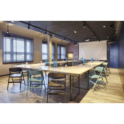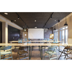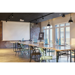 Tagung an der Ostsee – oder auch: Unkonventioneller Raum schafft unkonventionellen Raum. Ihr sucht für euch und eure Kollegen mal einen etwas anderen Tagungsraum? Cool, nicht so spießig und direkt am Meer? Dann seid ihr bei uns genau richtig. Es gibt in der Bretterbude 2 Tagungsräume, jeweils ca. 70 qm groß. Diese können natürlich auch zusammengeschlossen werden und ergeben dann ganze 140 qm Tagungsfläche – je nach Bestuhlung mit Platz für bis zu 70 Personen. Sie sind industriell, modern und warm eingerichtet.