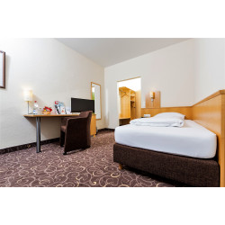 Bereits in zweiter Generation im Familienbesitz führt das Geschwisterpaar Lenz das 3-Sterne Superior Hotel in Fulda mit einem Zusammenspiel aus Tradition und familiärer Atmosphäre. Die gute Ausstattung der Zimmer und Tagungsräume mit moderner Technik machen das Haus zum perfekten Anlaufpunkt für Geschäftsreisende, Tagungsgäste oder Touristen. Kulinarisch bleiben keine Wünsche offen. Morgens trifft man sich am opulenten Frühstücksbuffet, später am Tag sollte man die köstlichen Kreationen im Restaurant von Augustinus Lenz genießen. Der Küchenchef legt großen Wert auf frische Produkte aus der Region. Bei schönem Wetter stehen den Gästen die Sommerterrasse und der idyllische Garten zur Verfügung. Entdecken Sie Fulda mit seinem barocken Dom, der romanischen Michaelskirche, den blühenden Gärten und Parks sowie den zahlreichen gemütlichen Restaurants und Cafés. Sportliche Gäste können sich bei einer spannenden Kanutour auf dem gleichnamigen Fluss austoben. Wichtige Anlaufpunkte in Fulda: Vom City Partner Hotel Lenz erreichen Sie die Hochschule Fulda in sehr kurzer Zeit. Die Fachhochschule befindet sich direkt gegenüber. Der ICE-Bahnhof, das Kongresszentrum und die Altstadt erreichen Sie jeweils nach einem kurzen Spaziergang von ca. 20 Minuten.
