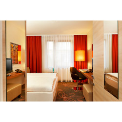 Das H+ Hotel Hannover ist barrierefrei und liegt gut erreichbar in der Nähe zur Messe Hannover, auch die Innenstadt ist nicht weit entfernt. 179 Gästezimmer und Suiten, ein Restaurant und eine Hotel-Bar mit dazugehörigem Biergarten, ein Fitnessraum mit Sauna und Ruhebereich sowie Tagungs- und Konferenzräume zeichnen das Hotel aus. Die 179 Gästezimmer mit insgesamt 358 Betten unterteilen sich Einzel- und Doppelzimmer in zwei Kategorien sowie in Junior-Suiten und Suiten. Auf Wunsch können Zustellbetten für weitere Personen aufgestellt werden. Die Komfortausstattung reicht von einer Klimaanlage, einem Flachbildfernseher mit gratis Sky Sports-Kanälen sowie inklusivem WLAN in allen Zimmern bis hin zu einer kostenlosen Tageszeitung, einer Tee- und Kaffeestation und Bademänteln in den gehobenen Kategorien. Nach einer erholsamen Nacht können Sie sich in aller Ruhe am Frühstücksbuffet umschauen. Wählen Sie nach Belieben aus dem vielseitigen Angebot und lassen Sie es sich schmecken. Das Restaurant „Gaumenfreund“ verwöhnt Sie mittags und abends mit internationalen Speisen und unterschiedlichen Themenbuffets. Die Hotel-Bar ist der gesellige Treffpunkt für den Abend, und bei schönem Wetter ist auch der direkt angrenzende Biergarten geöffnet, in dem auch gegrillt wird. Wer sein tägliches Training nicht vernachlässigen oder sich nach einem langen Tag eine Auszeit gönnen möchte, kann den hoteleigenen Fitnessraum aufsuchen. Neben verschiedenen Trainingsgeräten profitieren Sie als Gast hier auch von der Sauna und dem Ruhebereich. Für Tagungen und andere Events stehen im H+ Hotel Hannover 13 Konferenzräume für bis zu 370 Personen zur Verfügung. Die Räume sind mit moderner Technik ausgestattet und haben einen direkten Zugang zur Terrasse. Auf Wunsch unterstützt Sie das das Hotelteam bei der Planung und der Durchführung der Veranstaltung, sorgt für das Catering und kümmert sich um ein passendes Freizeitprogramm.
