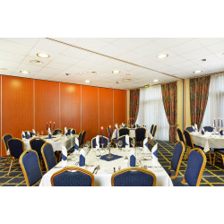 Das H+ Hotel Hannover liegt gut erreichbar in der Nähe des Messegeländes und des ehemaligen EXPO-Geländes. Zu den Leitmessen bietet das H+ Hotel Hannover einen kostenfreien Shuttleservice zu den einzelnen Messehallen an. Nutzen Sie nach einem langen Tag die hoteleigene Sauna zur Entspannung oder verfolgen Sie gemeinsam mit anderen Gästen in der Bar die neusten Sportereignisse auf Sky-TV. Das Hotel verfügt über 13 Konferenzräume für bis zu 370 Personen. Die Räumlichkeiten sind mit moderner Tagungstechnik und einer Klimaanlage ausgestattet. Die im Erdgeschoss gelegenen Räume haben alle einen Zugang zur Terrasse. Sie lassen sich je nach Bedarf und Art des Events untereinander kombinieren und unterschiedlich einrichten. Alle haben Tageslicht und sind verdunkelbar. Zusätzlich bietet das Foyer Möglichkeiten für Hausmessen oder Ausstellungen. Für die Verpflegung Ihrer Gäste stehen das Restaurant und die Bar des H+ Hotels Hannover zur Verfügung. Auf Wunsch beliefert der Catering-Service auch bei Veranstaltungen außerhalb des Hotels. Ein individuelles Rahmenprogramm, das zu Anlass und Teilnehmern passt, stellt das Veranstaltungsteam gerne gemeinsam mit Ihnen zusammen und kümmert sich um die Organisation.