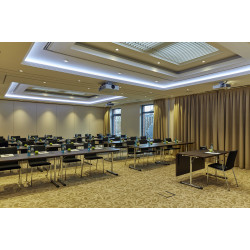 Das H4 Hotel Hannover Messe bietet ideale Voraussetzungen für Geschäftsreisende. Fußläufig zur Messe gelegen und unweit von der TUI Arena entfernt ist es schnell vom Flughafen und dem Hauptbahnhof zu erreichen. Wenn Sie mit dem Auto anreisen, stehen Ihnen 260 teilweise überdachte Parkplätze zur Verfügung. Vom H4 Hotel Hannover Messe erreichen Sie die niedersächsische Landeshauptstadt verkehrsgünstig über eine direkte S-Bahn-Anbindung und die nahegelegene Autobahn. Über das großzügige Tagungsfoyer erreichen Sie den Veranstaltungsbereich mit 10 variablen Tagungsräumen und vier Businessappartements. Die Tagungsräume bieten Platz für Veranstaltungen mit bis zu 720 Personen. Bei Bedarf kann das Tagungsfoyer mit genutzt werden, beispielsweise für Brainstormings und Pausen. Alle Tagungsräume sind ebenerdig gelegen und mit modernster Konferenztechnik ausgestattet. Sie verfügen über Tageslicht und eine individuell regelbare Klimaanlage. Drei Tagungsräume sind PKW befahrbar und somit für Produktpräsentationen bestens geeignet. Im gesamten Haus steht unseren Tagungsgästen WLAN inklusive zur Verfügung. Das Gaumenfreund-Team von H-Hotels.com ist Ihnen gern bei der Planung Ihrer Veranstaltung behilflich – von der ersten Planung, über das Catering und die Ausarbeitung von Incentives bis zur Verabschiedung Ihrer Gäste. Wir machen Ihre Veranstaltung zu einem einzigartigen Erlebnis. Das H4 Hotel Hannover Messe bietet Ihnen den perfekten Rahmen für Ihren Messebesuch und Ihre Veranstaltung - zentral und exklusiv gelegen mit internationalem Flair.