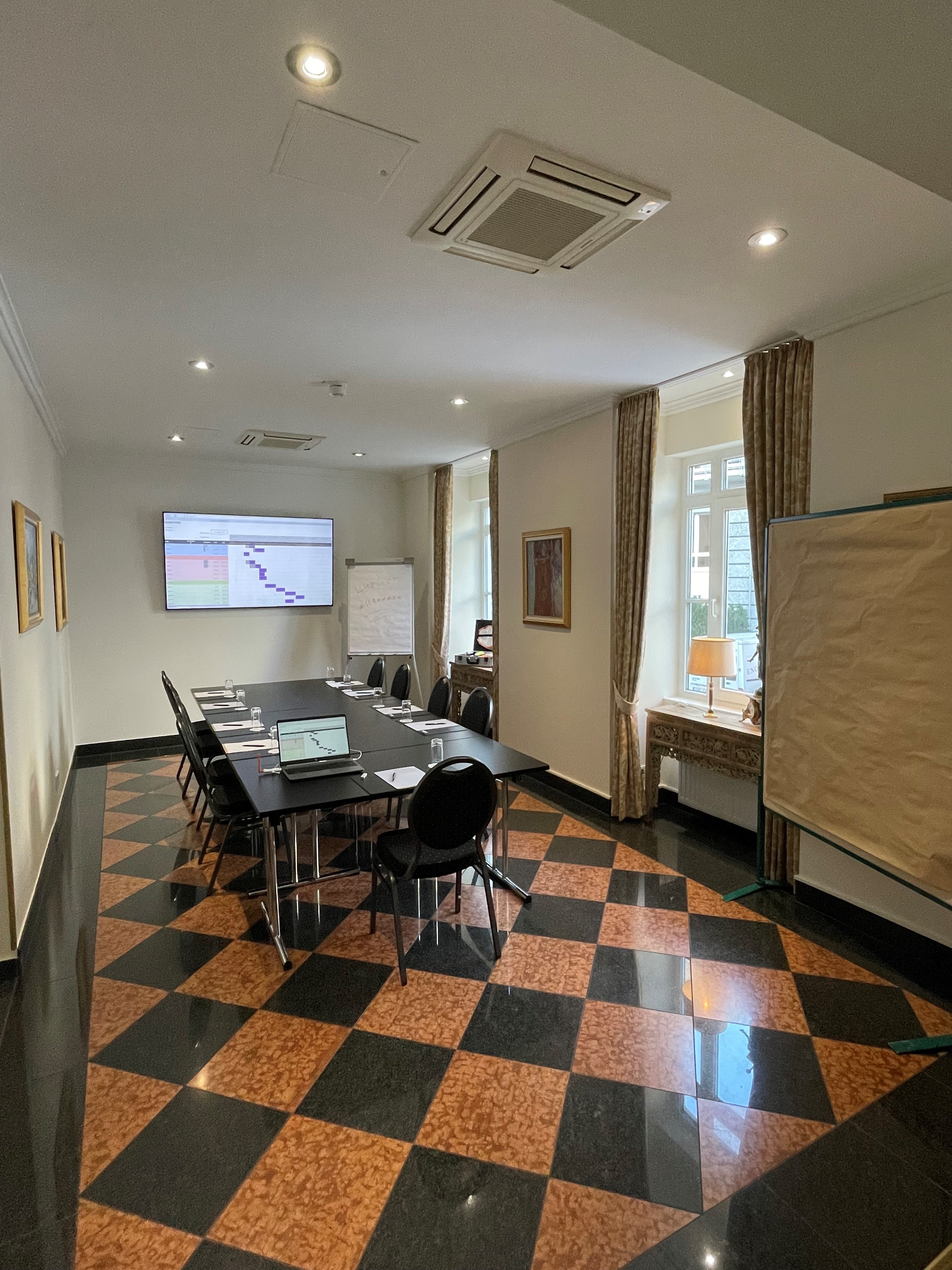 Der voll klimatisierte Tagungsraum mit Tageslicht und seinem freundlichen Ambiente bildet den perfekten Rahmen für eine erfolgreiche Tagung. Der Raum wird nach Ihren Wünschen gestellt, so dass Sie sich unbeschwert um die Belange Ihrer Veranstaltung kümmern können. BESTUHLUNG FÜR IHRE TAGUNG Stuhlreihen: maximal 20 Teilnehmer möglich Parlamentarisch: maximal 10 Teilnehmer möglich Block: maximal 12 Teilnehmer möglich