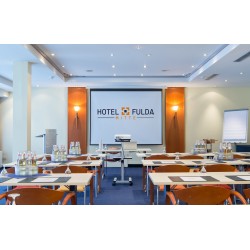 Das HOTEL FULDA MITTE befindet sich im Zentrum von Fulda, in der Mitte Deutschlands. Diese Lage bietet optimale Erreichbarkeit durch den nur 600m entfernten Haupt-/ICE-Bahnhof Fulda und eine sehr gute Autobahnanbindung. Vom hauseigenen Parkhaus bringt Sie ein Aufzug direkt hoch in die Lobby. Das Innenstadthotel ist idealer Ausgangspunkt für fußläufige Erkundungen der schönen osthessischen Barockstadt. Im altehrwürdigen und geschichtsträchtigen Stadtzentrum stehen wundervolle Fassadenbauten aus dem 18. Jahrhundert direkt neben idyllischen, grünen Parks und Gärten mit kunstvollen Statuen. Neben Sightseeing Highlights sind auch Einkaufsmeilen und gemütliche Gassen nur einen Katzensprung entfernt. Genießen Sie alle Annehmlichkeiten eines 4*-Hotels und exzellenten Service in direkter Nähe zum bekannten Fuldaer Dom. 134 helle und geschmackvoll eingerichtete Zimmer, teilweise klimatisiert, erwarten Sie. Wählen Sie aus dem Kissen-Menü Ihr Wunschkissen für eine besonders erholsame Nacht. Für individuellen Komfort steht Ihnen ein Zimmerservice zur Verfügung. Das Hotel Fulda Mitte bietet im gesamten Haus kostenfreien Internetzugang (W-LAN) sowie in jedem Zimmer eine gratis Auswahl verschiedener Sorten Kaffee und Tee an. Starten Sie mit einem ausgedehnten Frühstück in den Tag. Ob frische Obst-Variationen oder leckere Pfannkuchen mit Rhöner Rapshonig - In der stilvollen Atmosphäre des Restaurants "Ambiente" genießen Feinschmecker die Gaumenfreuden der raffinierten und leichten Küche des Hotels. Eine wechselnde Saison-Karte ergänzt das Angebot mit frischen Gerichten, passend zur Jahreszeit. Unser Haus ist auch ein gefragtes Tagungshotel und auf die Wünsche der Veranstaltungsplaner eingestellt. Wir bieten Ihnen 13 unterschiedlich große Tagungs- und Konferenzräume in schlichter und farbenfroher Eleganz, moderne technische Ausstattung sowie 2 separate Pausenbereiche. Der Internetzugang ist natürlich kostenfrei. Ein besonderer Tipp: Das Ideen-Karussell, eine langsam rotierende Plattform mit Stehtischen, hält Geist und Kreativität Ihrer Teilnehmer in Schwung.