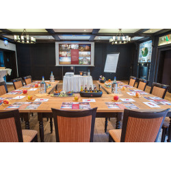 Effizient, funktional, preisgünstig soll Ihr Tagungshotel sein? Das sind viele. Außerdem für das große Plenum ebenso Platz bieten, wie für Einzel- und Teamwork? Davon gibt es manche. Wenn Sie zusätzlich auf einzigartiges Ambiente, inspirierende Umgebung, private Atmosphäre, idyllische Landschaft und Großstadtnähe Wert legen, landen Sie ganz automatisch bei uns. Ob Geschäftsbesprechung oder mehrtägige Seminare und Tagungen mit mehreren hundert Teilnehmern – wir organisieren jedes Event nach Ihren individuellen Wünschen. Möchten Sie Sitzungsbetreuung, Pausencatering, Frühstück, Halb- oder Vollpension, Freizeitaktivitäten, ein Abschlussfest, Abendveranstaltungen für Ihre Messegäste? Nennen Sie uns Ihre Wünsche. Wir machen sie wahr. Entweder als preisgünstiges Sitzungspaket oder ganz individuell für Sie zusammengestellt. Und kommen Sie ruhig mit leichtem Gepäck, denn die modernste Tagungstechnik von Beamern und Projektoren über Stellwände und Flipcharts bis zu Moderatorenkoffern stellen wir Ihnen zur Verfügung.