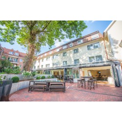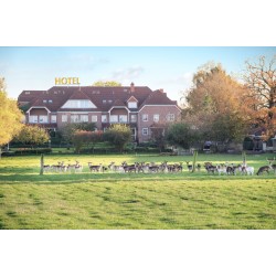 Genau genommen ist unser Hotel ein kleines Dorf in der großen Stadt Hannover. Denn seine Gebäude gruppieren sich um baumbestandene Plätze und kurze Wege, die Begegung und Kommunikation fördern. Das hoteleigene Damwildgehege, die angrenzende Pferdekoppel und das nahe gelegene Naturschutzgebiet Altwarmbüchener Moor unterstreichen den idyllischen Charakter. Dabei hat jedes Haus seine ganz eigene Geschichte, Charakter und Persönlichkeit. Das seit 200 Jahren immer wieder umgebaute und erweiterte Haupthaus – einstmals Dorfkrug, Telegrafenstation und Standort des ersten Telefons in der Region. Die im rustikalen Stil niedersächsischer Fachwerkbauernhäuser errichtete Tenne, das mondäne Landhaus mit Anklängen an die Ballsaalarchitektur der Zwanziger und der lichtdurchflutete Wintergarten im modernistischen Stil und ausgestattet mit modernster Gebäudetechnik. Zusammen bilden sie ein Ensemble, das in der deutschen Hotellandschaft sicher einzigartig ist. Allein deswegen lohnt sich ein Besuch.