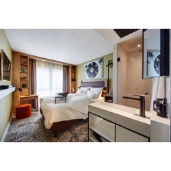 Wir sind verliebt in Hannover. Und Ihr werdet Euch auch verlieben. Ganz sicher! Tagen im coolsten Tagungsraum Deutschlands. Das außergewöhnliche Design und die flexiblen Nutzungsmöglichkeiten überzeugten die Leser des Branchenmagazins "Mein Tophotel": Unser innovative Boardroom des me and all hotels hannover bietet mit seinem Besprechungstisch, der sich zu einer Tischtennisplatte umfunktionieren lässt, beste Möglichkeiten zu sportlichen Pausen und Networking. Das fröhliche Design und die Flexibilität machen ihn zu „Deutschlands coolstem Tagungsraum 2022“. Die Mein Tophotel-Redaktion zeichnet mit diesem Award die außergewöhnlichsten und kreativsten Tagungsräumlichkeiten des Jahres aus. 30 Tagungsräume wurden für den Award eingereicht, rund 1.300 Abstimmer wählten ihren Favoriten. Unser Boardroom hat genau die richtige Größe, um mit kleineren Teams ungestört zu arbeiten. Ein großartiger Workspace, der sich Eurem Mindset anpasst UND Gemütlichkeit und Effizienz unangestrengt verbindet. We love Vintage! Und wir lieben Backsteinwände. Darum verpacken wir die 165 Zimmer im me and all hannover am Rande der hannoverschen Fußgängerzone, direkt am Aegi, auch entsprechend. Im me and all hannover erwartet Euch jede Menge Holz unter den Füßen, einladendes Leder zum Chillen und feinstes Vintage-Design auf allen Etagen. Und natürlich eine fabelhafte Event Lounge für Eure Momente, Stunden und Tage in Hannover. UND eine U-Bahn Haltestelle mit Anbindung an den Hauptbahnhof (1 km - kann man auch bequem hinlaufen), an die Messe (7,1 km - 18 min mit der U-Bahn) und Flughafen (13,2 km - ca. 20 Autominuten, 41 min mit U- und S-Bahn) direkt vor der Tür. Ist das cool? Oder ist das cool? Der Maschsee ist auch gleich um die Ecke. Und der ist der Hammer und everybody's darling! Wie alle me and all hotels, wird auch das me and all hotel hannover ein Greensign Level 4 Hotel, in dem Nachhaltigkeit, Energieeffizienz und Umweltschutz gelebt und gepflegt werden. Wir nutzen zu 100% Naturstrom, sind eng verdrahtet mit unserer Region und entwickeln unser Nachhaltigkeits-Management kontinuierlich weiter, damit Euer CO2-Fußabdruck bei uns so sparsam wie möglich ist. Lässiger Luxus, der sich gut anfühlt. Hannover, wir freuen uns auf Dich.