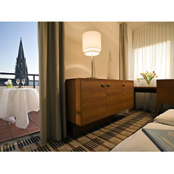 Die ebenso reizende wie prachtvolle Altstadt der badischen Metropole finden Sie praktisch vor der Haustür. Alle 115 Zimmer des 3-Sterne Mercure Hotels Freiburg am Münster sind klimatisiert. Unser Haus ist VDR-zertifiziert, die vier Tagungsräume eignen sich für Veranstaltungen mit bis zu 140 Personen. Im benachbarten Fitness-Studio trainieren Sie zu Sonderkonditionen. Der Hauptbahnhof ist nur 1 km entfernt, bis zur A5 sind es ca. 8 km. Ihr Auto parkt in der kostenpflichtigen angrenzenden Tiefgarage.