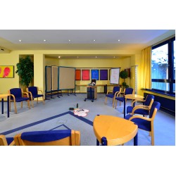 Ihr Tagungs- und Veranstaltungsbereich Umfassenden Service und Komfort mit 7 Veranstaltungsräumen Wer wie Trainer, Moderatoren, Referenten und Präsentatoren fast zwei Drittel des Jahres in Hotels verbringt und immer höchste Konzentration und Leistung erbringen muss, braucht eine ganz besondere Atmosphäre: eine Leichtigkeit, die beflügelt. Diese Leichtigkeit finden Sie bei uns. Unsere sieben Tagungsräume von 30 bis 108 qm (bei Zusammenlegung bis zu 162 qm) wurden professionell und nach lernpsychologischen Gesichtspunkten konzipiert und eingerichtet. Warme Farben fördern Wohlbefinden und Kreativität. Die technische Ausstattung ist selbstverständlich perfekt. Für Rahmenprogramme bietet die Umgebung von Sport bis Kultur vielseitige Möglichkeiten. Ein Erlebnisbad direkt gegenüber, Sommer- und Winterrodeln, Kegeln, Fahrradtouren, Wurfscheiben-Schießen - es ist einfach für jeden etwas dabei.