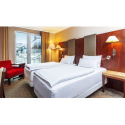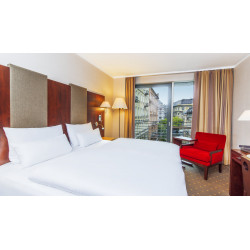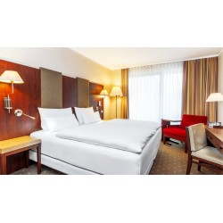 Willkommen im NH Budapest City Modernes Business Hotel Das NH Budapest City verbindet Moderne und Komfort. Alle unsere 160 modernen und geschmackvoll eingerichteten Zimmer haben extrabreite Betten mit dicken, ge-mütlichen Doppelfederkernmatratzen, die speziell für die NH Hotel Group angefertigt wurden. Wir möchten, dass Sie sich zu Hause fühlen. Zentral gelegen und gut erreichbar Das NH Budapest City befindet sich zentral im Geschäftsviertel auf der Pest-Seite der Stadt. In nächster Nähe finden Sie die wichtigsten Sehenswürdigkeiten, zur Donau sind es nur 10 Minuten zu Fuß. Sie reisen schnell mit dem Auto und mit allen öffentlichen Verkehrsmitteln an. Für Gäste stehen ausreichend Parkplätze zur Verfügung. Feel Safe at NH Wir bei der NH Hotel Group möchten, dass Sie unvergessliche Erlebnisse in unseren Hotels genießen können. Aus diesem Grund haben wir Feel Safe at NH ins Leben gerufen – eine Reihe von Initiativen in all unseren Hotels, die von Branchenexperten geprüft wurden. Die Umsetzung einiger dieser Maßnahmen kann die Verfügbarkeit unserer Services beeinträchtigen. Für weitere Informationen besuchen Sie bitte: https://www.nh-hotels.de/highlights/feel-safe High Tech Tagungsräume Ob Seminare, Konferenzen oder Firmenfeiern – unsere fünf klimatisierten Tagungsräume können flexibel miteinander kombiniert werden. Der größte Raum bietet Platz für bis zu 110 Gäste. Mit gehobener technischer Ausstattung, flexibler Aufteilung, WLAN und Tageslicht, bieten wir Ihnen den perfekten Rahmen für eine erfolgreiche Veranstaltung. Buchen Sie unsere persönliche Event-Betreuung, unseren Experten-Service sowie unsere maßgeschneiderte Angebote. Überzeugen Sie sich von unserem erstklassi-gen Business-Team. Dieses steht Ihnen während der Planung und Durchführung Ihres Events jederzeit gerne mit Rat und Tat zur Seite. In den Kaffeepausen wird unser köstliches Essen originell präsentiert und trägt so zur Zufriedenheit Ihrer Teilnehmer bei: Die beste Voraussetzung für eine gelungene Veranstaltung! Warum Sie sich bei uns garantiert wohlfühlen? Unsere Zimmer sind modern und geschmackvoll eingerichtet. Wir wollen auf Ihre individuellen Bedürfnisse und Wünsche eingehen und freuen uns, Ihre Erwartungen in jeder Hinsicht zu erfüllen. Gönnen Sie sich nach Ihren Terminen eine Auszeit in unserem Fitnessbereich. Er ist rund um die Uhr für Sie geöffnet und bietet neben Cardiogeräten auch eine Sauna zum Entspannen an. Unser Ziel ist es, Sie mit leckerem und gesundem Essen zu verwöhnen. Beginnen Sie daher den Tag ausgeglichen mit unserem reichhaltigen Frühstücksbuffet, das jeden Morgen frisch zubereitet wird. Das Frühstücksbuffet bietet Ihnen eine große Auswahl an frischen Obstsäften, Gebäck, Aufschnitt, Käse, Obst, Joghurt, Brot und vielem mehr. Für Gäste, die früh abreisen müssen, gibt es außerdem ein Frühauf-steher-Frühstück an. Fragen Sie einfach unsere Mitarbeiter an der Rezeption. In unserem Restaurant „Manzanos“ finden Sie mittags und abends bis 22 Uhr eine große Auswahl an regionalen und internationalen Spezialitäten. Im Sommer können Sie Ihr Essen auf unserer idyllischen Terrasse genießen. Unsere Hotelbar ist täglich bis 1 Uhr morgens für Sie geöffnet. Hier verwöhnen wir Sie mit Cocktails, Weinen und leckeren Snacks. Damit Sie kein Sportereignis ver-passen, übertragen wir nationale und internationale Fußballspiele auf unseren Flachbildschirmen. Noch Wünsche? • Barrierefreie Zimmer • Business-Center • Extrabreite Betten • WLAN kostenfrei im gesamten Hotel Zimmerausstattung Im NH Budapest City legen wir Wert auf Ambiente und Komfort. Mit modernem Design und einer gemütlichen Einrichtung schaffen wir in allen drei verschiedenen Zimmerkategorien eine Atmosphäre, in der Sie sich wohlfühlen werden. In unseren 160 modern eingerichteten Zimmern erwartet Sie das „NH Sleep Better“ Konzept. Die eigens für unsere Hotelgruppe angefertigten Doppelfederkernmatratzen ermöglichen Ihnen einen frischen Start in den Tag. Alle Zimmer verfügen über Flachbildfernseher, Minibar, Auswahl an verschiedenen Kissen, Kaffee- und Tee-Zubereitung, Sofa, Klimaanlage, Dusche/Badewanne, Safe, Bademantel, Hausschuhe, Föhn, Bügeleisen und Bügelbrett. WLAN ist bei uns selbstverständlich kostenfrei. Sport und Freizeit Dem Körper was Gutes tun. Ob morgens vor der Arbeit oder abends danach, wir laden Sie täglich in unseren 24-Stunden geöffneten Fitnessraum und Wellnessbereich ein. Die sportlich Aktiven können sich über neueste Cardiogeräte und Laufbänder sowie Freihanteln und Fitnessgeräte freuen. Für Erholungssuchende bieten wir Ihnen einen sauberen und gemütlichen Wellnessbereich. Lassen Sie in unserer Sauna die Seele baumeln. Alternativ können Sie sich auch einfach für eine Massage entscheiden und dabei genüsslich entspannen. Darüber hinaus laden wir Sie ein, unser modernes Solarium zu entdecken. Gastronomie Gesund in den Tag starten Genießen Sie täglich von 06:30 bis 10:00 Uhr ein gesundes und leckeres Frühstücksbuffet. Wir bieten Ihnen eine große Auswahl an frischen Fruchtsäften, Brot, Wurst, Käse, Obst, Joghurt, und Gebäck. So starten Sie voller Energie in den neuen Tag! Für Frühaufsteher gibt es das Frühstück bereits ab 5:00 Uhr. Wir möchten, dass Sie an Sonntagen ausschlafen können und verlängern gerne das Frühstück bis 12:00 Uhr. Um Ihren Aufenthalt entspannt ausklingen zu lassen, bieten wir Ihnen zusätzlich die Abreise (Check-out) bis 17:00 Uhr an. Kreative Küche genießen In unserem Restaurant Manzanos, verwöhnen wir Sie mittags und abends mit kreativer mediterraner und internationaler Küche. Wir laden Sie herzlich ein, unsere kulinarischen Köstlichkeiten in freundlicher und entspannter Atmosphäre zu genießen. Den Tag entspannt ausklingen lassen Den Abend lassen Sie am besten in unserer gemütlichen Hotelbar Afterwork ausklingen. Bis 01:00 Uhr erwarten Sie eine große Auswahl an internationalen Weinen 