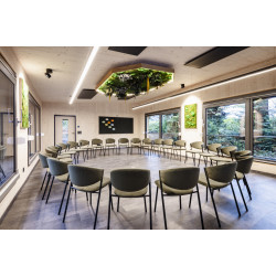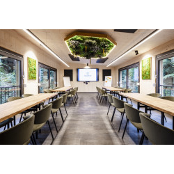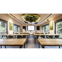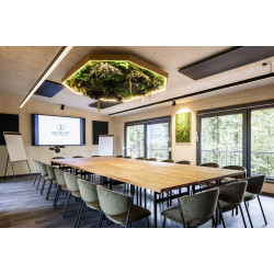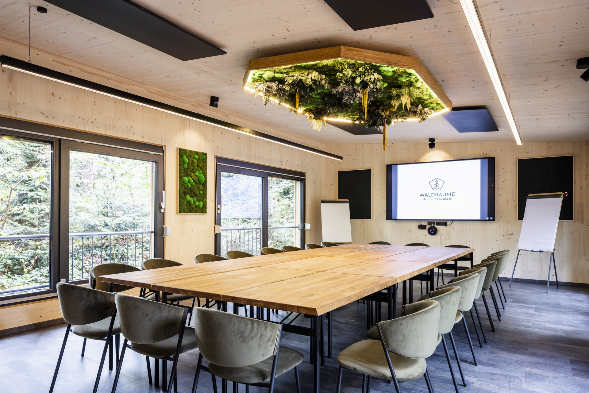 Die Waldräume bestehen aus modernen, lichtdurchfluteten Quadern mitten im Wald und bieten Platz für bis zu 45 Personen. Flexible Bestuhlungsvarianten – vom Theater bis zum Stuhlkreis – ermöglichen individuelle Setups für Seminare, Workshops und Vorträge. Große Schiebefenster öffnen den Blick ins Grüne, der Duft von Holz und die natürliche Umgebung fördern Konzentration, Kreativität und Entspannung. Zur Ausstattung gehören modernste Tagungstechnik, WLAN, inspirierende Außenflächen für Gruppenarbeiten sowie individuelle Betreuung durch das Event-Team.